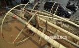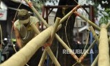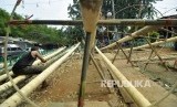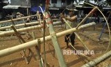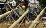 REPUBLIKA.CO.ID, JAKARTA -- Pedagang menyelesaikan pohon pinang yang akan dijual di kawasan Manggarai, Jakarta, Jumat (4/8).