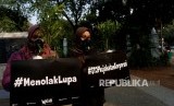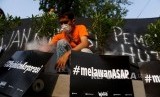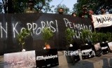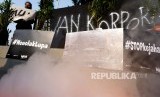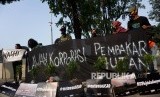 REPUBLIKA.CO.ID, JAKARTA -- Aktivis Wahana Lingkungan Hidup Indonesia (Walhi) melakukan aksi protes pembakaran hutan di depan Istana Merdeka, Jakarta,Selasa (8/8).