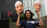 REPUBLIKA.CO.ID, JAKARTA -- Pemuda-Pemudi Antikorupsi yang tergabung dalam Sekolah Anti Korupsi (SAKTI) ICW melakukan aksi di depan gedung Komisi Pemberantasan Korupsi (KPK), Jakarta, Rabu (9/8).