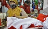 REPUBLIKA.CO.ID, JAKARTA -- Seorang penjahit menyelesaikan pembuatan bendera merah putih di Pasar Senen, Jakarta, Rabu (9/8). Menjelang 17 Agustus peringatan Hari Kemerdekaan ke-72 Republik Indonesia pemesanan bendera merah putih di Pasar Senen meningkat hingga 100 persen.p