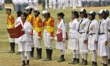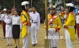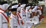 Sejumlah siswa-siswi SD mengikuti lomba Tata Upacara Bendera (TUB) dan Peraturan Baris Berbaris (PBB) di Lapangan Banteng, Jakarta, Rabu (9/8). (FOTO : Republika/Mahmud Muhyidin)