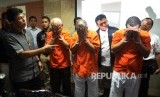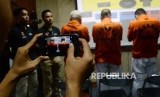 Tersangka dan barang bukti ditunjukkan saat gelar perkara pengungkapan jaringan internasional kejahatan perdagangan orang di Bareskrim Polri, Jakarta, Kamis (10/8). (FOTO : Republika/Yasin Habibi)