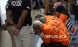 Kabareskrim Polri Komjen Pol Ari Dono Sukmanto (kiri) berbincang dengan tersangka saat gelar perkara pengungkapan jaringan internasional kejahatan perdagangan orang di Bareskrim Polri, Jakarta, Kamis (10/8). (FOTO : Republika/Yasin Habibi)