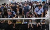 Ratusan umat Islam melakukan Sholat Jum’at di areal parkir basement gedung ICE BSD City, Tangerang, Jum’at (11/8). (FOTO : Republika / Darmawan)