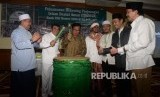Ketua Umum Partai Idaman KH Rhoma Irama (kedua kiri), didampingi dua Dewan Syuro Partai Idaman KH Fahrurrozi Isqaq (kiri), KH Abu Hanifah (keempat kiri), Ketua Dewan Pengurus Masjid Agung Sunda Kelapa (MASK) H M Aksa Mahmud (ketiga kiri), dan sejumlah jajaran Idaman saat peluncuran Rekening Perjuangan Islam Damai Aman (Idaman) di Aula Sakinah Masjid Agung Sunda Kelapa, Jumat (11/8) (FOTO : Republika/ Yasin Habibi)