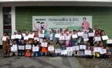 Sebelum anak-anak mempraktikkan, dia pun mempersiapkan bahan yang terdiri dari air, sabun cair, dan pewarna makanan (merah, kuning, dan biru). Setelah itu, puluhan anak-anak itu pun dibagi beberapa kelompok untuk belajar.