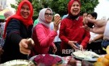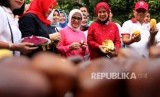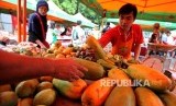 REPUBLIKA.CO.ID, JAKARTA -- Istri Wakil Presiden Jusuf Kalla, Mufidah Kalla mengujungi stand kampanye buah lokal Kementerian Pertanian saat berlangsungnya Hari Bebas Kendaraan Bermotor (HBKB) di Jakarta, Ahad (13/8).