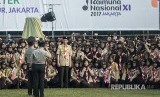 REPUBLIKA.CO.ID,CIBUBUR -- Presiden Joko Widodo menyaksikan prosesi Bhinneka Tunggal Ika Pramuka dalam acara Raimuna Nasional XI yang digelar di Bumi Perkemahan Cibubur, Jakarta Timur, pada 13-21 Agustus 2017. Acara itu digelar bersamaan dengan acara Hari Pramuka ke-56 dan pembukaan Raimuna Nasional XI di Bumi Perkemahan Cibubur, Jakarta Timur, Senin (14/8).