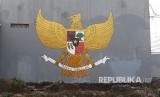 Mural lambang Garuda Pancasila. (FOTO : Republika/Febrianto Adi Saputro)