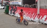 Seorang anak bersepeda melewati mural bertuliskan angka 72, menyambut hari kemerdekaan Indonesia. (FOTO : Republika/Febrianto Adi Saputro)