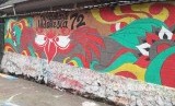 Dinding yang dipenuhi coretan mural menyambut hari kemerdekaan RI ke-72. (FOTO : Republika/Febrianto Adi Saputro)