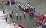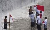 Seorang warga membawa Bendera Merah Putih saat memperingati HUT ke-72 RI di Sungai Unda, Klungkung, Bali, Kamis (17/8). (FOTO : Antara/Nyoman Budhiana)