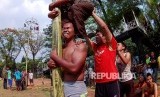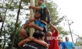 REPUBLIKA.CO.ID, BANDUNG -- Sejumlah tunanetra mengikuti lomba panjat pinang di Panti Sosial Bina Netra Wyata Guna, Kota Bandung, Kamis (17/8). Kegiatan yang diikuti ratusan tunanetra ini tersebut berlangsung meriah.