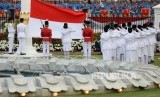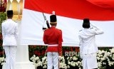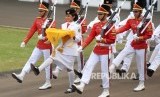 Pasukan Paskibraka melakukan penurunan bendera pusaka merah putih pada Upacara Hari Kemerdekaan ke-72 di Istana Merdeka, Jakarta, Kamis (17/8). (FOTO : Republika/Wihdan Hidayat)