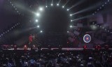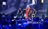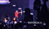 Personel group SNSD Hyoyeon menghibur saat acara hitung mundur Asian Games 2018 di Monumen Nasional, Jakarta, Jumat (18/8). (FOTO : Mahmud Muhyidin)