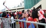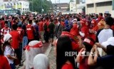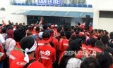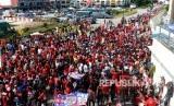 Ribuan suporter Timnas Sepakbola Indonesia antre masuk ke Stadion Selayang, Malaysia, Ahad (20/8). (FOTO : Republika/ Wihdan Hidayat)