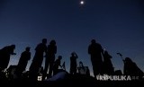 Warga mengabadikan gerhana dari Clingmans Dome, di Taman Nasional Great Smoky Mountains , Tennessee, Amerika Serikat. (FOTO : Johnatan Ernst/Reuters)