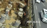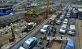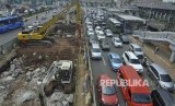 REPUBLIKA.CO.ID, JAKARTA -- Kendaraan melintas di samping proyek pembangunan light rail transit (LRT) masih dalam proses penyelesaian di Jalan MT Haryono, Cawang, Jakarta, Rabu (23/8).