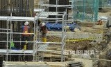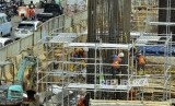 Sejumlah pekerja menyelesaikan proyek pembangunan light rail transit (LRT) di Jalan MT Haryono, Cawang, Jakarta, Rabu (23/8). (FOTO : Mahmud Muhyidin)