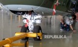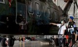 Penyidik KPK melakukan pemeriksaan fisik pada Helikopter Agusta Westland (AW) 101 di Hanggar Skadron Teknik 021 Pangkalan Udara Halim Perdanakusuma, Jakarta, Kamis (24/8). (FOTO : Republika/Prayogi)