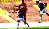 Striker timnas Seagames XXIX 2017 Indonesia Ezra Walian mengejar bola dalam pertandingan Grup B melawan Kamboja di Selangor, Malaysia, Kamis (24/8) (FOTO : Wihdan Hidayat/Republika)