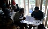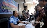 Warga yang menjadi korban First Travel mengisi formulir di posko pengaduan korban First Travel di Bareskrim Polri, Jakarta, Jumat (25/8). (FOTO : Republika/Prayogi)