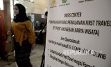 REPUBLIKA.CO.ID, JAKARTA -- Warga yang menjadi korban First Travel mencari informasi di posko pengaduan korban First Travel di Bareskrim Polri, Jakarta, Jumat (25/8).