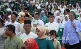 Ratusan pasang pengantin mengikuti nikah massal PKB Mantu, Jakarta, Jumat (25/8). (FOTO : Republika/ Yasin Habibi)