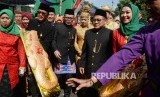 Iring-iringan romobongan peserta pengantin nikah massal berjalan menuju gedung resepsi. (FOTO : Yasin Habibi/Republika)