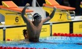 Perenang Indonesia Gagarn Nathaniel berhasil mendapat medali emas dalam nomor 100 meter gaya dada, usai mencapai finish tercepat dengan waktu 1:01:76.