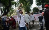 Warga imigran Rohingya melakukan aksi di depan gedung UNHCR, Jakarta, Senin (28/8). (FOTO : Republika/ Yasin Habibi)