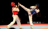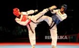 REPUBLIKA.CO.ID, KUALA LUMPUR -- Atlet Taekwondo putra Indonesia Reinaldi Atmanegara bertarung dengan atlet Thailand Ramnarong Sawekwiharee pada nomor nomor kyorugi putra 54Kg Taekwondo SEA Games 2017 Kuala Lumpur di KLCC, Malaysia, Senin (28/8).
