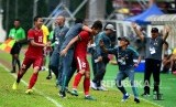 REPUBLIKA.CO.ID, KUALA LUMPUR -- Pemain Indonesia mendekati suporter usai menang melawan Myanmar pada laga perebutan tempat ke-3 SEA Games 2017 Kuala Lumpur di Stadium Selayang, Malaysia, Selasa (29/8).