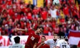 Pemain belakang Indonesia Muhammad Rezaldi Hehanusa menanduk bola saat melawan Myanmar pada laga perebutan tempat ke-3 SEA Games 2017 Kuala Lumpur di Stadium Selayang, Malaysia, Selasa (29/8). (FOTO : Republika/ Wihdan Hidayat)