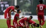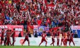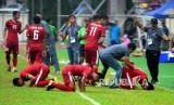 Pemain Indonesia mendekati suporter usai menang melawan Myanmar pada laga perebutan tempat ke-3 SEA Games 2017 Kuala Lumpur di Stadium Selayang, Malaysia, Selasa (29/8). (FOTO : Republika/Wihdan Hidayat)