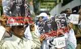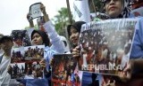 REPUBLIKA.CO.ID, JAKARTA -- Massa yang tergabunng dalam Kaum Profesional Indonesia bagi Solidaritas Muslim Rohingya melakukan aksi unjuk rasa di depan Kedutaan Besar Myanmar, Jakarta, Sabtu (2/9).