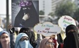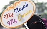 REPUBLIKA.CO.ID, JAKARTA -- Komunitas Niqab Squad melakukan aksi damai di Bundaran Hotel Indonesia, Jakarta, Ahad (10/9).