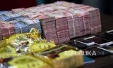 Barang bukti uang tunai dan sabu dihadirkan sebelum rilis pengungkapan penyelundupan narkotika perbatasan di BNN, Jakarta, Selasa (12/9) (FOTO : Republika/ Wihdan Hidayat)