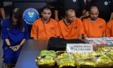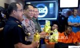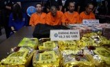 Tersangka dihadirkan saat rilis pengungkapan penyelundupan narkotika perbatasan di BNN, Jakarta, Selasa (12/9). (FOTO : Republika/ Wihdan Hidayat)