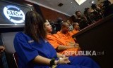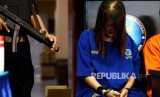 Tersangka inisial F selaku bendahara berhasil dimanakan dan dihadirkaan saat rilis pengungkapan penyelundupan narkotika perbatasan di BNN, Jakarta, Selasa (12/9). (FOTO : Republika/ Wihdan Hidayat)