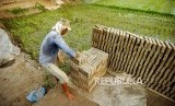 Seorang pekerja menata batu bata usai proses jemur di Desa Tegalwangi, Kabupaten Tegal, Jawa Tengah, Rabu (13/9). Akibat menipisnya persediaan air selama musim kemarau, sebagian petani di daerah tersebut beralih profesi menjadi perajin batu bata dan dalam satu hari mampu memproduksi batu bata sebanyak 1000 buah yang dijual Rp800 per buah. (FOTO : Parno/Antara)