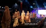 Model memperagakan busana dalam acara Fashion On The Street 2017 yang digelar di Jalan Pejanggik, Kota Mataram, NTB, pada Kamis (14/9) malam. (FOTO : Republika/Nursyamsi)