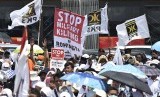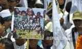 REPUBLIKA.CO.ID, JAKARTA -- JAKARTA -- Massa yang tergabung dalam berbagai elemen masyarakat melakukan aksi bela Rohingya 169 di Kawasan Silang Monas, Jakarta, Sabtu (16/9).