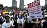 Ratusan demonstran dari berbagai kelompok masyarakat berkumpul di Bunderan HI dalam aksi bela Rohingya, Jakarta, Rabu (6/9). (FOTO : Republika/Taufiq Alamsyah Nanda)