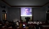 REPUBLIKA.CO.ID, DEPOK -- Siswa bersama guru menonton bersama film G30S PKI di SMK Muhammadiyah I Kota Depok, Jawa Barat, Rabu (20/9) malam.
