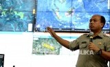 REPUBLIKA.CO.ID, JAKARTA -- Kepala Pusat Data Informasi Humas Badan Nasional Penanggulangan Bencana (BNPB), Sutopo Purwo Nugroho memberikan paparan saat konferensi pers terkait perkembangan terkini Gunung Agung di Gedung BNPB, Jakarta, Senin (25/9).