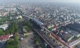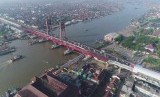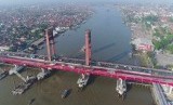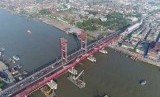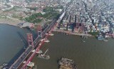 REPUBLIKA.CO.ID, PALEMBANG -- Foto dari udara, Selasa (26/9) pagi, lintasan LRT di atas Sungai Musi sukses tersambung.