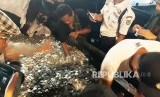 Koin dari Bobotoh Viking untuk PSSI yang diserahkan kepada PT Persib Bandung Bermartabat (PT PBB), di Graha Persib, Kota Bandung, Rabu (27/9). (FOTO : Republika/Febrian Fachri)