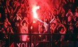 Supporter HNK Rijeka menyalakan kembang api saat pertandingan AC Milan melawan HNK Rijeka pada penyisihan Grup D Liga Europa 2017/2018 di San Siro, Milan, Jumat (29/9) dini hari WIB. (FOTO : EPA-EFE/MATTEO BAZZI)