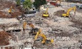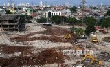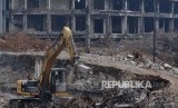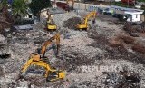 REPUBLIKA.CO.ID, JAKARTA -- Pekerja membersihkan puing-puing bangunan sisa kebakaran menggunakan alat berat di Pasar Senen, Jakarta Pusat, Jumat (29/9).